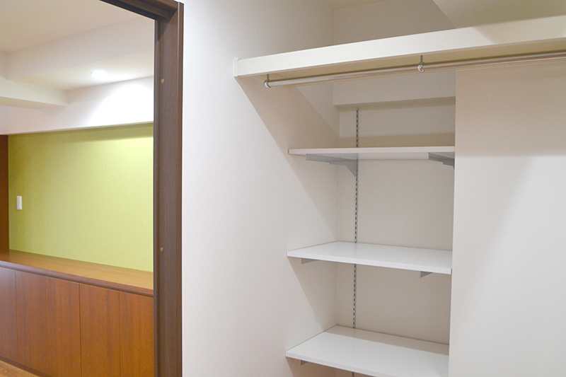 寝室の隣には2.8帖のウォークスルーを配置し、リビングからの出入りも出来るように生活動線も考えた配置にしました。