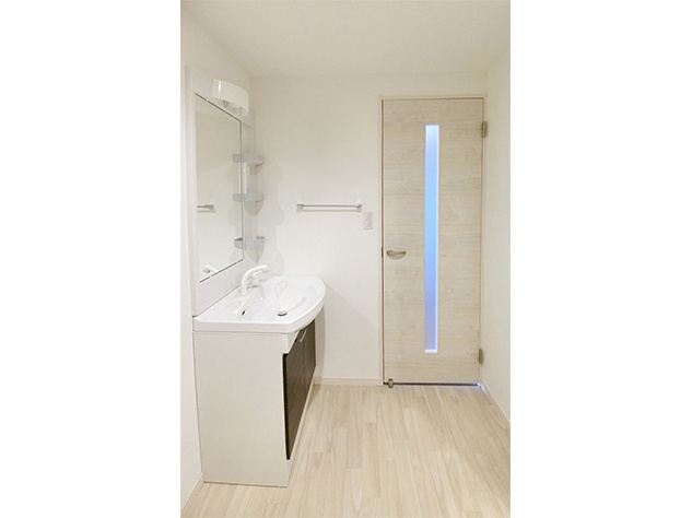 天井まで届く大きな収納スペースも確保し、片付けのしやすさにもこだわりました。水回り関係は既存の配置を残しつつ、使いやすい様にとそれぞれをひと回り大きめの設計に。