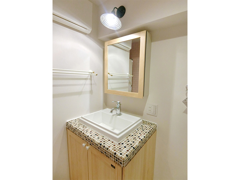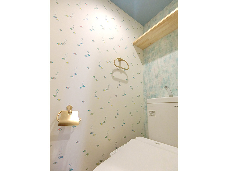 洗面室はナチュラルフレンチ、トイレは“海の中”など、空間ごとに遊び心のあるコーディネートを施しています。