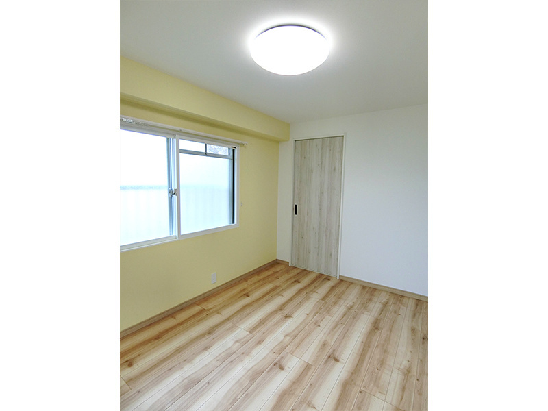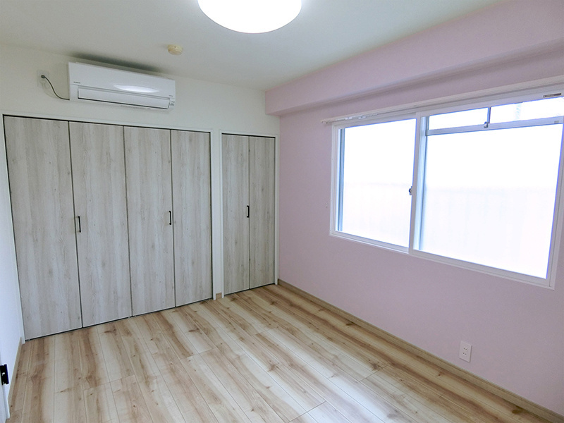 各部屋のアクセントクロスのカラーはミルキーカラーで統一し、柔らかな雰囲気に仕上げました。全体が明るくポップなイメージに。