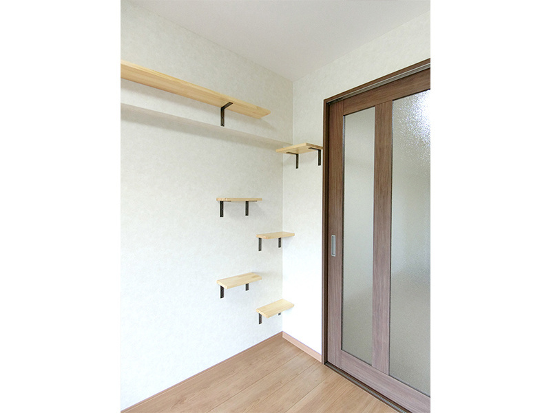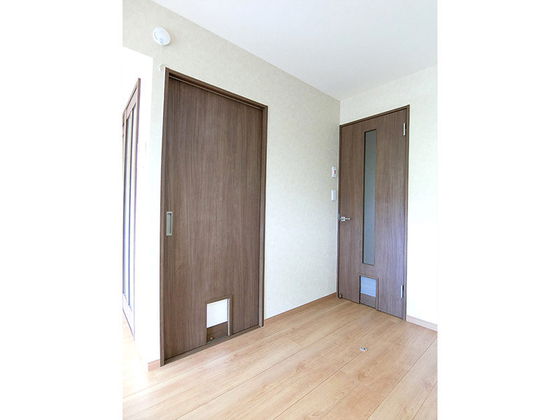 リビングには猫用キャットウォークを設置し、ドアは自由に出入り出来る仕様にしました。