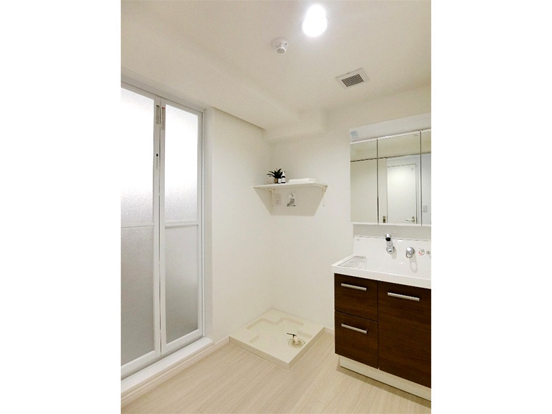 収納スペースをしっかり確保しつつ、洗面室はゆとりある広さに。