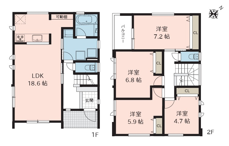 1階:LDK18.6 パントリー 2階:洋7.2 洋6.8 洋5.9 洋4.7 |